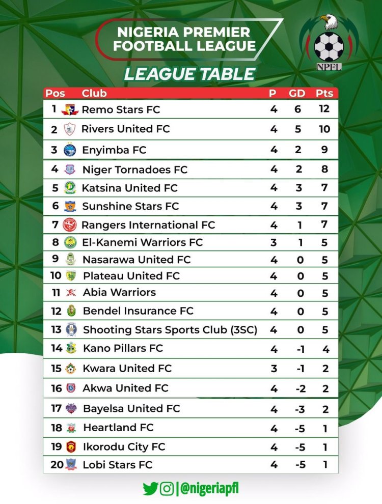Akwa United who have managed only two draws against Lobi Stars and Abia Warriors are placed 17th on the table. They are now in danger of an early battle with relegation.